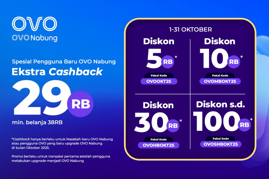 - Kode promo: OVOOKT25 (potongan Rp 5,000 dengan minimum belanja Rp 150,000)