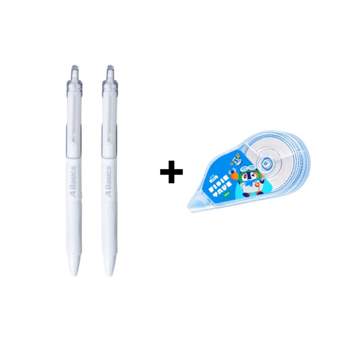 Bundle Pulpen Click 0,5mm Hitam A Basics 2 pcs + Fixie Tape Astro Kids