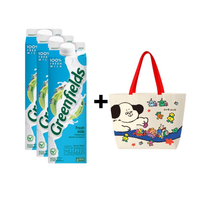 [Bundle] 3 Greenfields Fresh Milk Plain/Susu Segar 950ml + 1 Starlight Carry Bag Astro Kids x Joyfullyscribbled