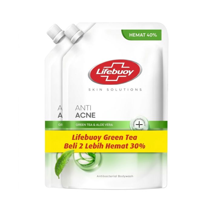 Lifebuoy Anti Acne Greentea & Aloe Vera Antibacterial Body Wash Refill 2pcs