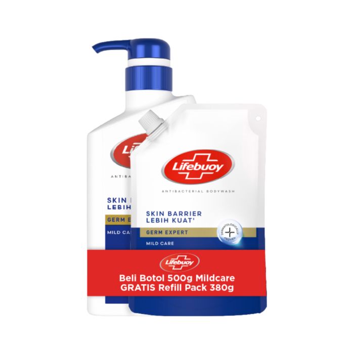 Buy 1 Lifebuoy Mild Care Antibacterial Body Wash Pump 500gram Get 1 Lifebuoy Mild Care Antibacterial Body Wash Pouch 380gram
