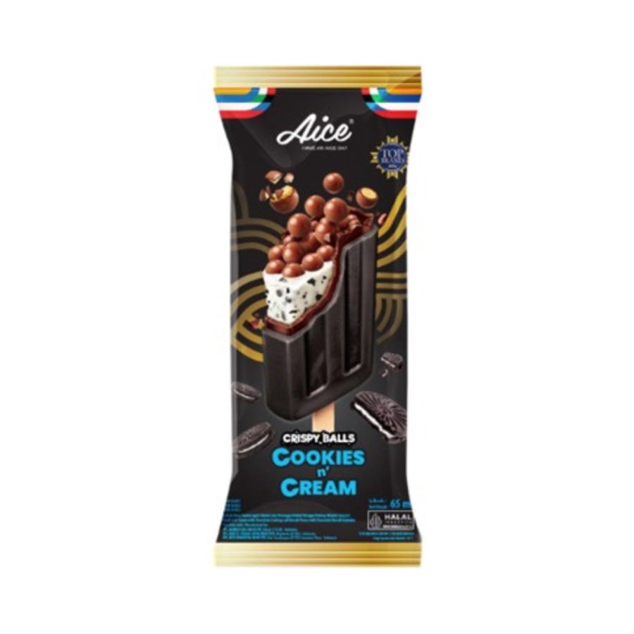 Nikmati sensasi es krim klasik dari Aice dengan rasa cookies n cream yang creamy dan renyah. Aice Aice Crispy Balls Cookies n Cream Stick dikemas dalam stik 65 ml, pas untuk camilan sendiri atau sebagai pencuci mulut setelah makan. Bagian luar dibalut cokelat laziz, sementara bagian dalam adalah es krim lembut berpadu dengan crispy balls, memberikan kombinasi tekstur menarik antara creamy dan renyah.