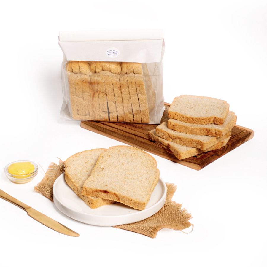 Roti Tawar Gandum dipanggang segar dengan tekstur lembut namun lebih padat, menghadirkan rasa gandum yang lebih kaya dan mengenyangkan. Pilihan tepat untuk konsumsi harian bagi yang menyukai roti dengan karakter lebih hearty, baik untuk menu manis maupun gurih.