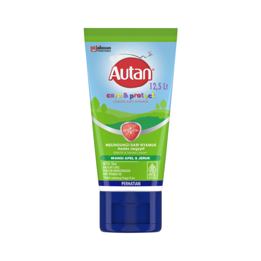Autan Care & Protect Lotion Anti Nyamuk Apel & Jeruk adalah losion anti-nyamuk lembut beraroma segar buah apel dan jeruk, diformulasikan khusus agar disukai anak-anak dan aman untuk seluruh keluarga. Dengan bahan aktif yang lebih rendah, produk ini melindungi kulit dari gigitan nyamuk sambil menjaga kelembapan, memberikan sensasi ringan dan harum sepanjang hari. Kandungan tambahan ekstrak Aloe Vera membuat kulit tetap lembut dan terlindungi. Produk ini telah memenuhi sertifikasi Halal MUI dan dirancang dalam kemasan tube yang praktis dan ekonomis.