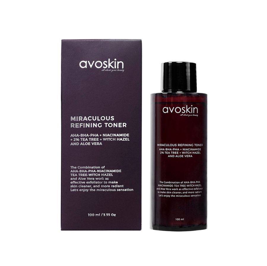 Avoskin Miraculous Refining Toner merupakan salah satu toner eksfoliasi dari Avoskin yang memiliki kandungan AHA-BHA-PHA-PGA yang dipadukan dengan Niacinamide, Tea Tree 2%, Witch Hazel, dan Aloe Vera.