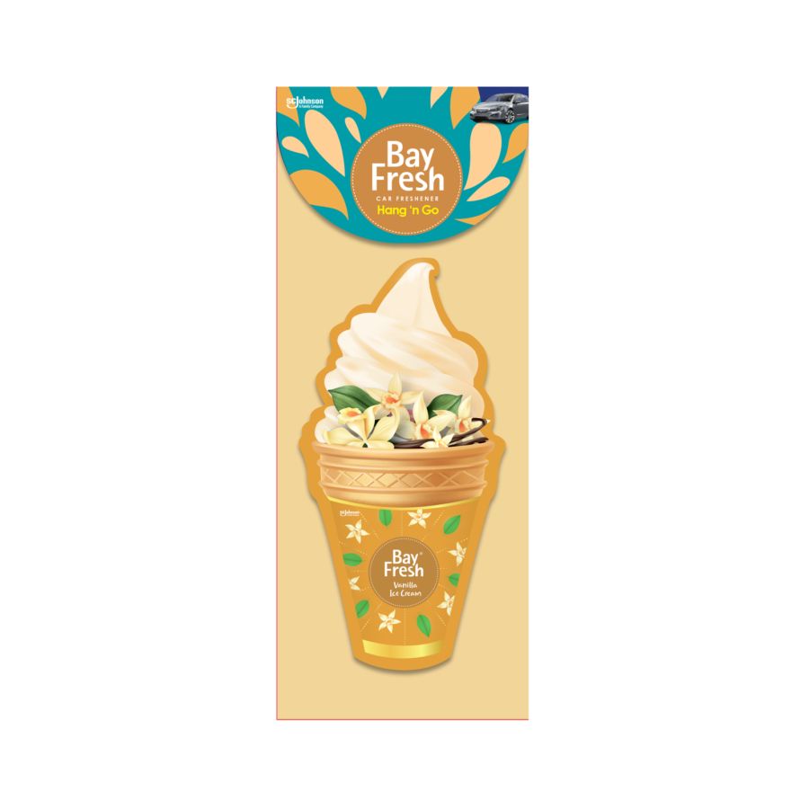 Bayfresh Hang N' Go Vanilla Ice Cream isi 1 pcs merupakan produk pengharum ruangan ataupun lemari mekanisme gantung dengan aroma es krim vanilla yang unik. Aroma yang dihasilkan dapat memberikan kesegaran sekaligus menghilangkan bau tidak sedap pada ruangan Anda.