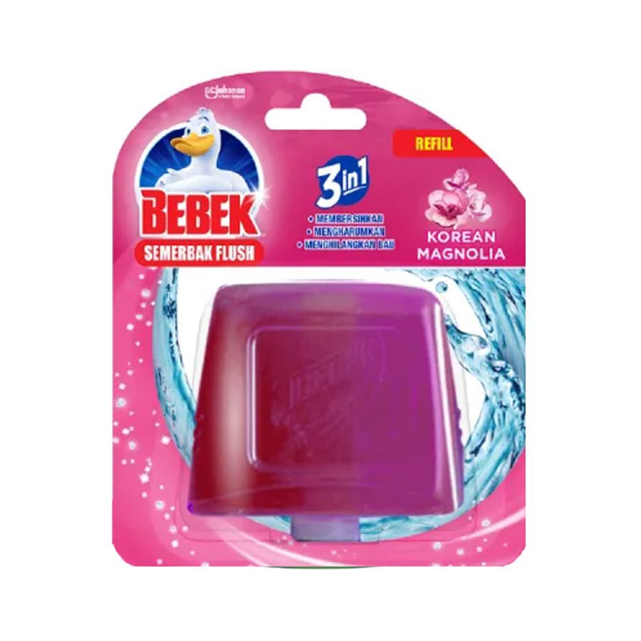 Flush Korean Magnolia Bebek Semerbak Flush dengan formula berbusa. Membersihkan, mencegah pembentukan kerak di permukaan kloset sekaligus mengharumkan udara di toilet. Mengandung germinex yang efektif membunuh kuman penyebab bau tidak sedap. Tidak berbahaya untuk septic tank.