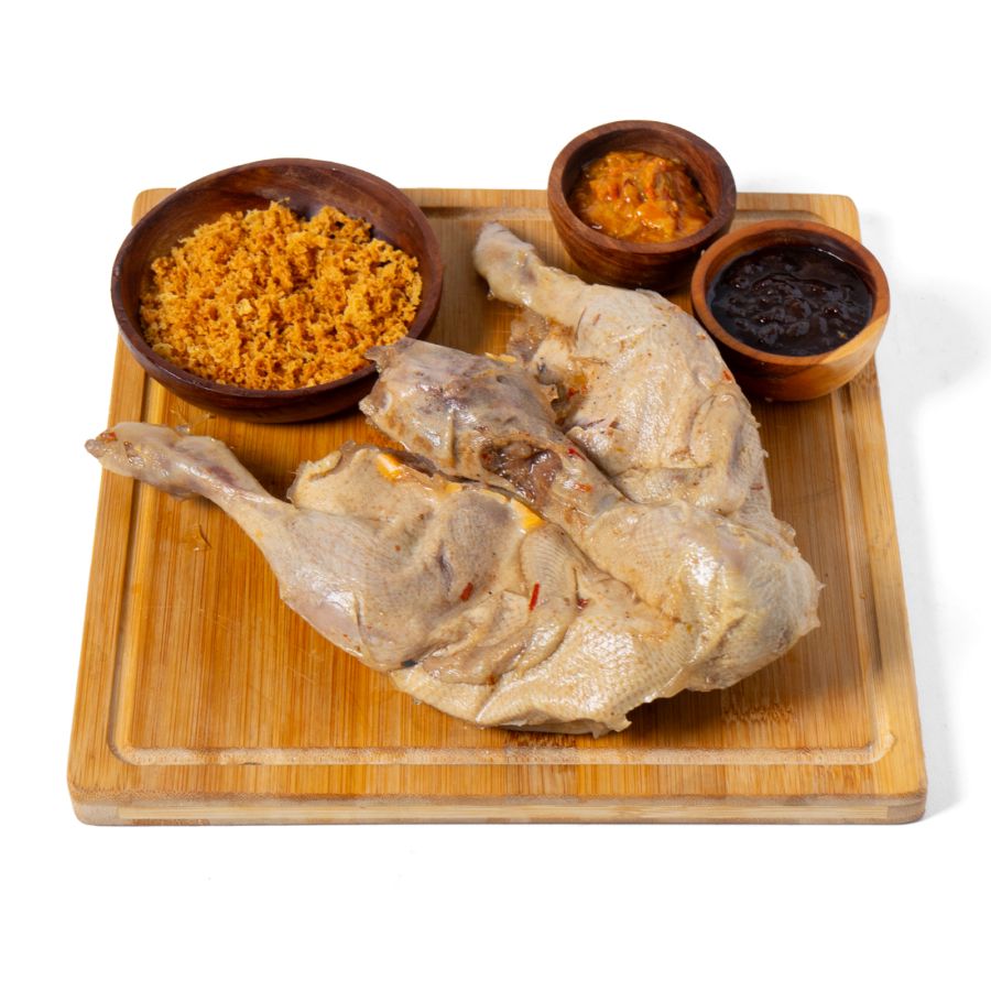 Begok Bebek Bakar Utuh produk bebek frozen siap bakar/goreng menawarkan keempukan daging dengan bumbu rempah meresap. Dikemas secara vakum, produk ini higienis, halal, dan sudah termasuk sambal pedas serta bumbu kuning/bakar, cocok untuk hidangan praktis tanpa amis.