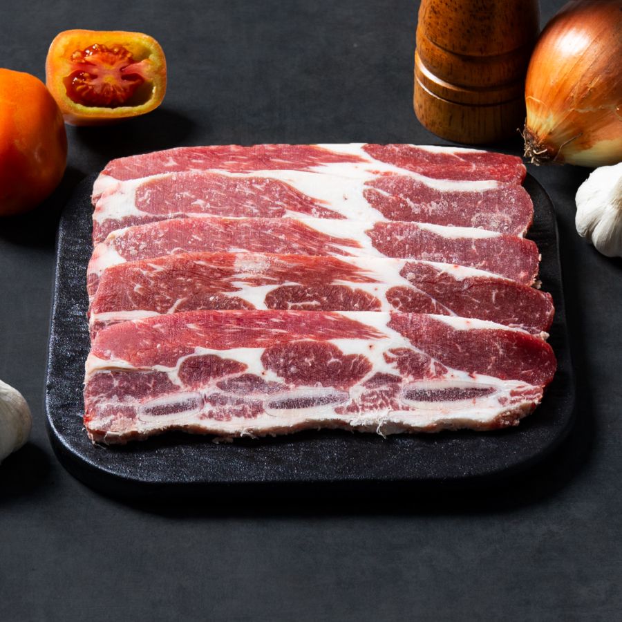 Potongan iga sapi premium berasal dari sapi dengan kualitas AUS 100% Black Angus Cattle. 100% Halal Certified,, menghasilkan cita rasa gurih yang kaya saat dipanggang, dibakar, atau dimasak slow-cooked. Ideal untuk menu steak, grilled short ribs, ataupun sop iga berkelas.