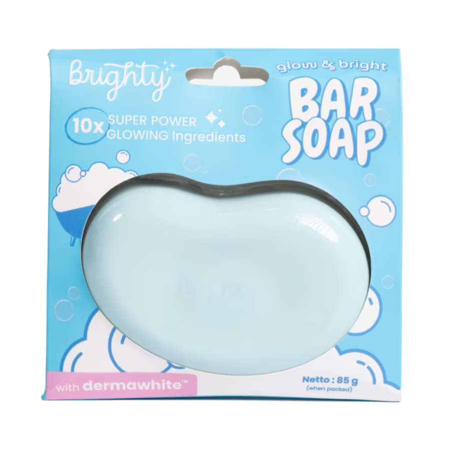 Brighty Glow & Bright Bar Soap adalah sabun pencerah kulit generasi baru dengan Dermawhite yang terbukti secara uji in-vivo mampu mencerahkan 3x lebih efektif dari Kojic Acid. Mengandung 10x Super Power Glowing Ingredients yang bekerja membersihkan, menutrisi, dan mencerahkan kulit hanya dalam sekali mandi. Teksturnya lembut, busa melimpah, dan aman digunakan setiap hari.