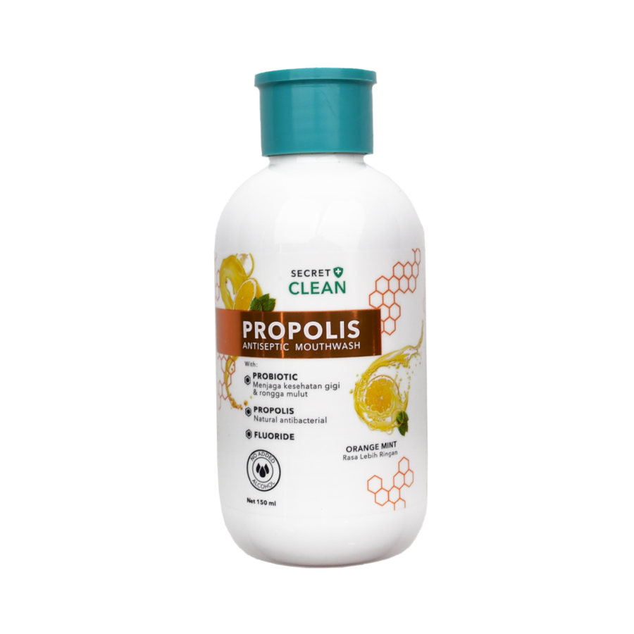 Bundle berisi:- 2 pcs Secret Clean Propolis Antiseptic Mouthwash Orange Mint 150 ml