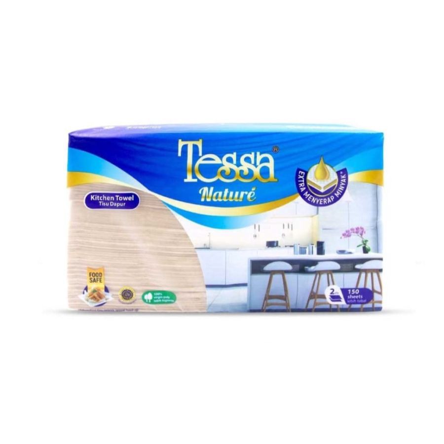 Bundle berisi:- 2 pcs Tissue Tessa Nature Kitchen Towel Interfold 2 ply/Tisu Dapur 150 sheets 1 Pack