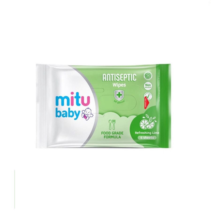 3 pcs Mitu Baby Antiseptic Wipes Refreshing Lime Tisu Basah 4 Sheets