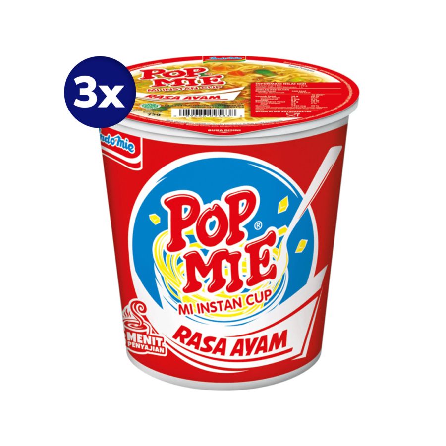 - 3 pcs Pop Mie Rasa Ayam/Popmie 75 gram