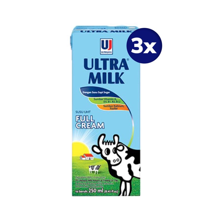- 3 pcs Ultra Milk Full Cream Susu UHT 250 ml