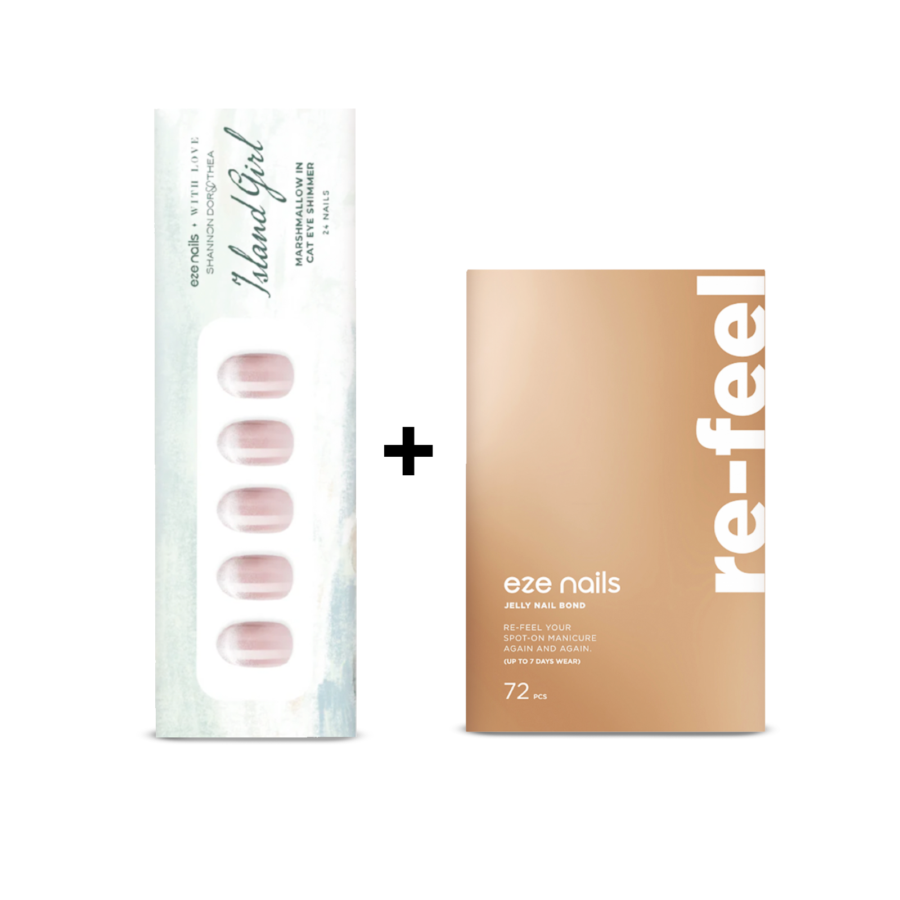 Bundle Eze Nails Marshmallow in Cat Eye Shimmer (Kuku Palsu Tempel) 1 packs + Re-Feel Manicure Jelly Bond - Eze Nails (Lem Pemakaian Ulang Kuku Tangan) 1 packs 1pcs