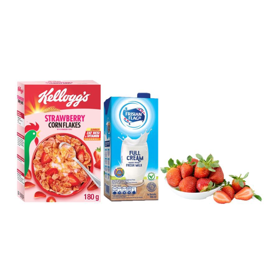 Bundle Sarapan Kellogg's Strawberry Cornflakes x Frisin Flag Susu UHT x Strawberry 1pcs