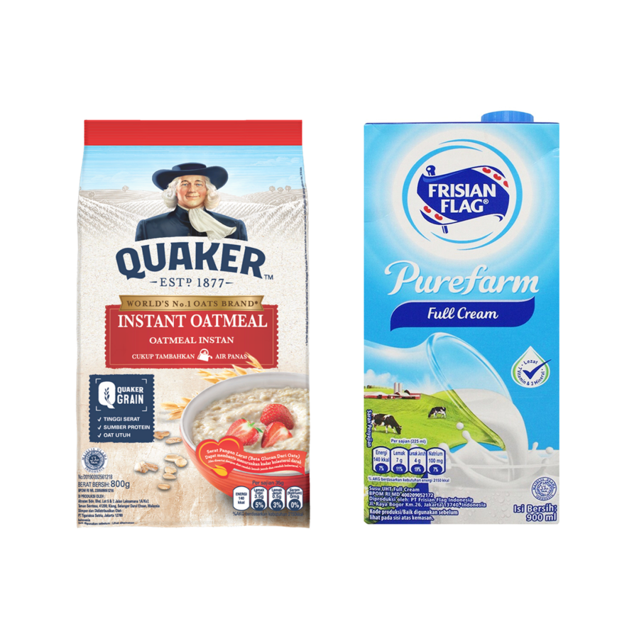 [Bundle] Sarapan Sehat Quaker Instant Oatmeal + Frisian Flag UHT 100gram