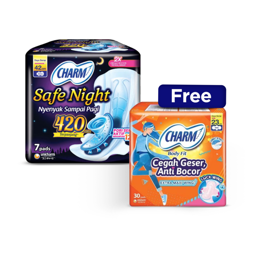 - Charm Body Fit Safe Night Wing 42cm 7pcs/Pembalut Wanita 1 Packs