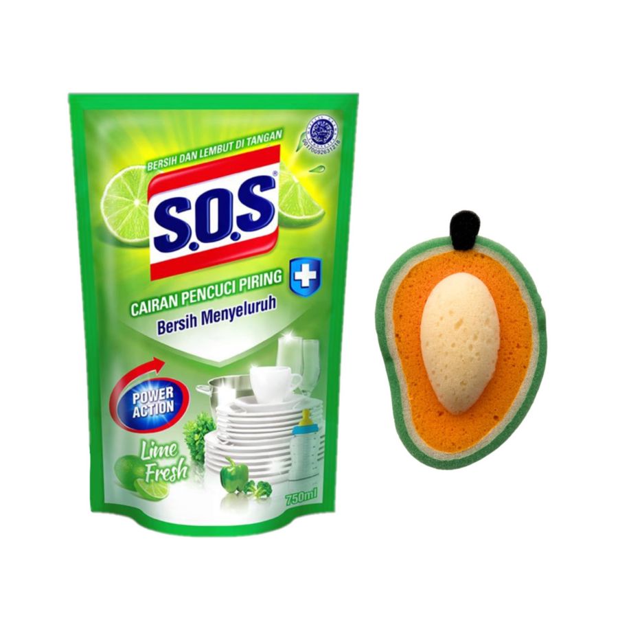 - 1pcs SOS Dishwash Liquid Lime Pouch 750ml/Sabun Cuci Piring