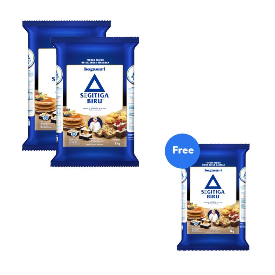 Buy 2 Get 1 Bogasari Segitiga Biru Tepung Terigu Protein Sedang Premium 1kg 1pcs