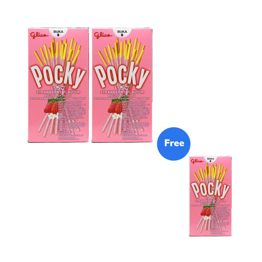 Buy 2 Get 1 Pocky Strawberry Regular Size 45gr 1pcs