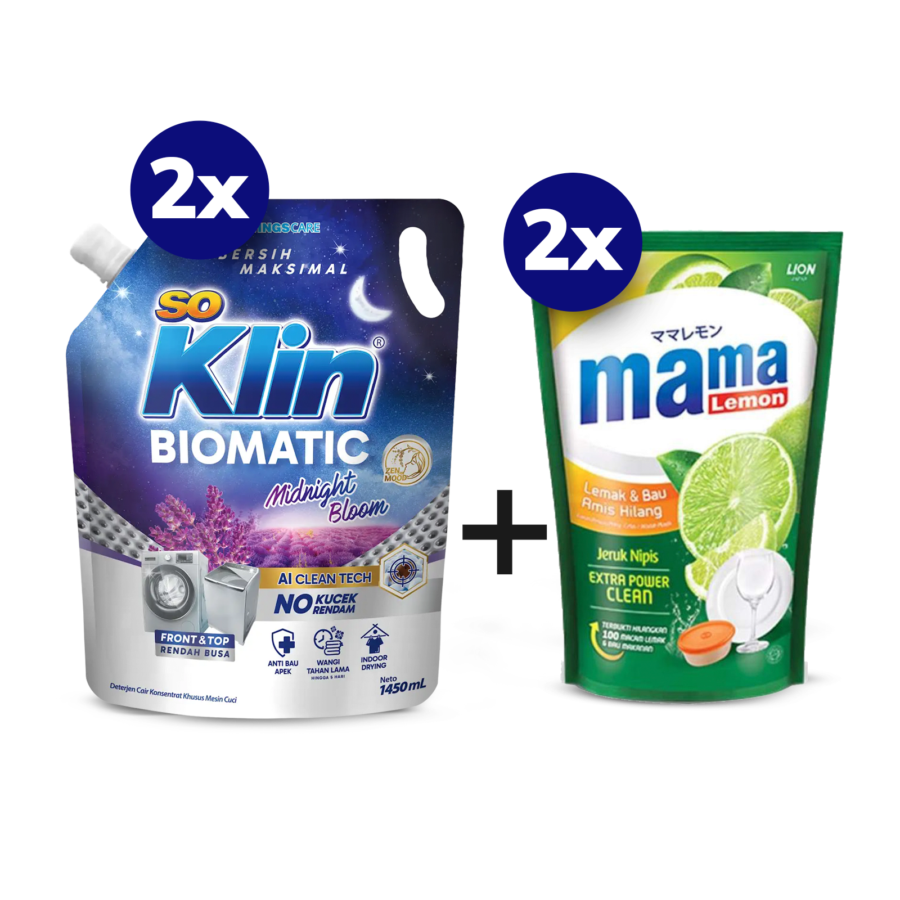 2 Pcs SoKlin Biomatic Detergen Cair Midnight Bloom Pouch 1450ML