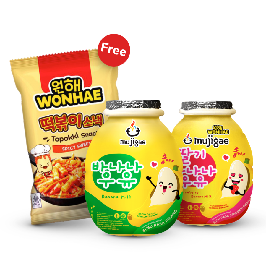 Buy Mujigae Banana Milk Original 250ml + Strawberry 250 ml Get Mujigae by Wonhae Topokki Snack Spicy Sweet 80gr 1pcs