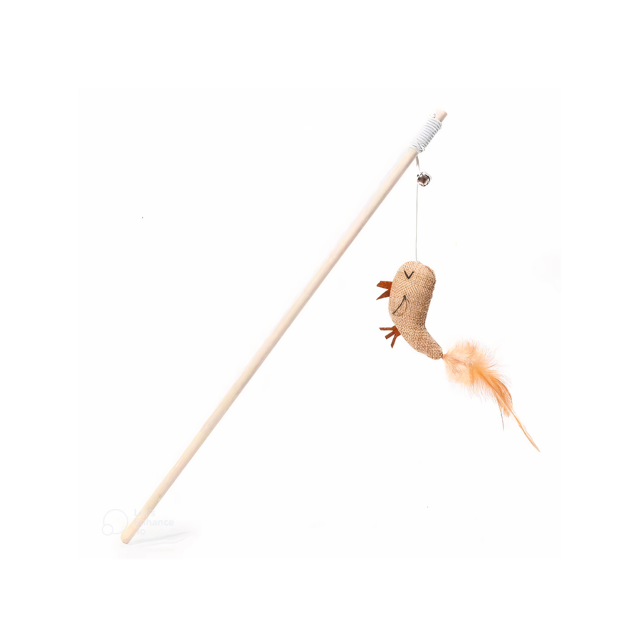 Cat Teaser Wooden adalah mainan interaktif untuk kucing berbentuk tongkat kayu dengan tali dan mainan gantung, dirancang untuk merangsang gerakan dan insting berburu kucing.