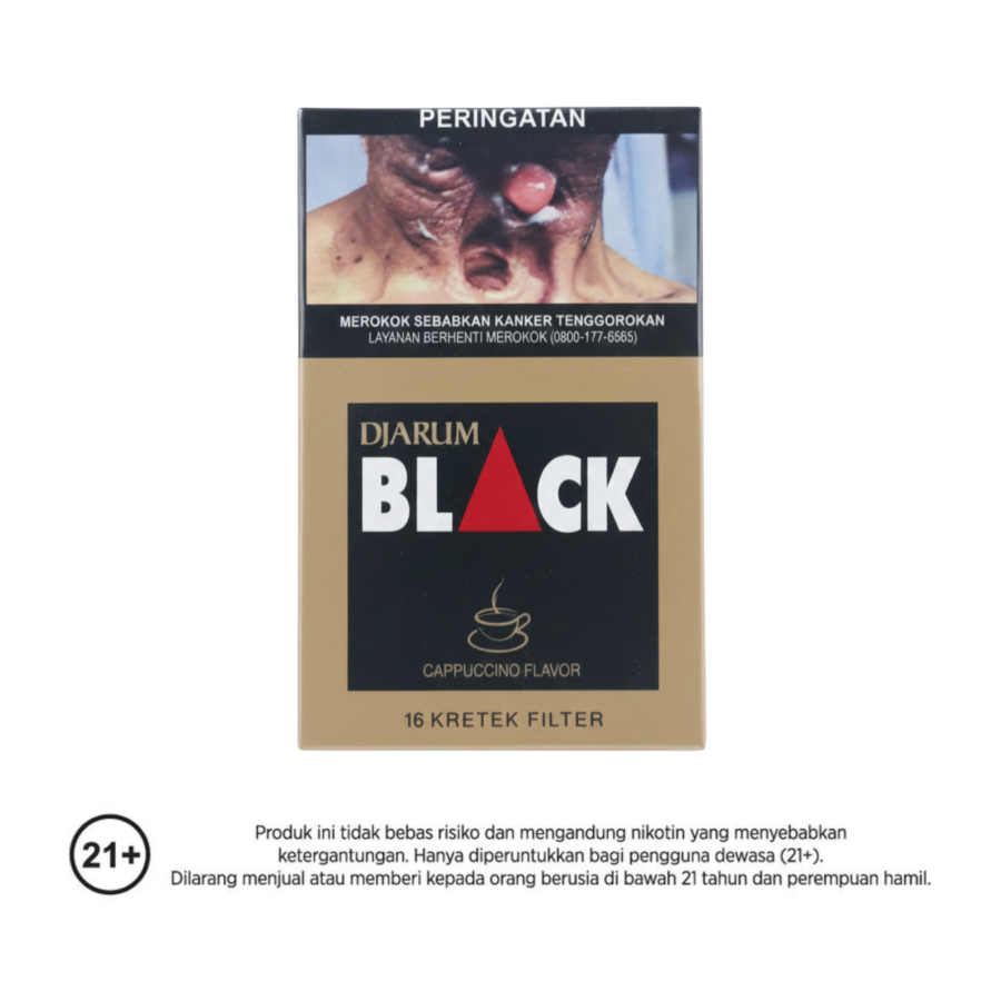 Djarum Black Cappuccino menawarkan sensasi kretek filter dengan aroma cappuccino yang lembut, creamy, dan aromatik. Kombinasi tembakau, cengkeh, dan sentuhan kopi memberikan pengalaman merokok yang berbeda, hangat, serta memiliki karakter rasa yang khas.