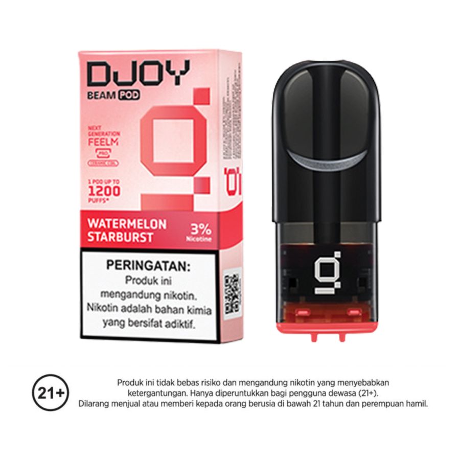 DJOY Beam Pod Watermelon Starburst menghadirkan cita rasa buah semangka manis dan segar yang intens serta alami di setiap hisapan. Pod refill ini dirancang khusus untuk perangkat DJOY Beam Pro dengan teknologi FEELM Pro Ceramic Coil, sehingga memberikan sensasi vaping yang halus, konsisten, dan tahan lama hingga 1200 puff per pod.
