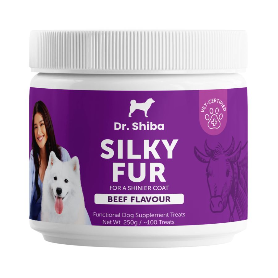 Kenalan dengan Silky Fur - rahasia untuk kulit sehat dan bulu berkilau anabul-mu! Camilan anjing yang bantu mereka merasa lebih sehat dan tampil menawan! Dikemas dengan rasa yang menggugah selera, diperkaya dengan probiotik dan prebiotik yang bermanfaat.