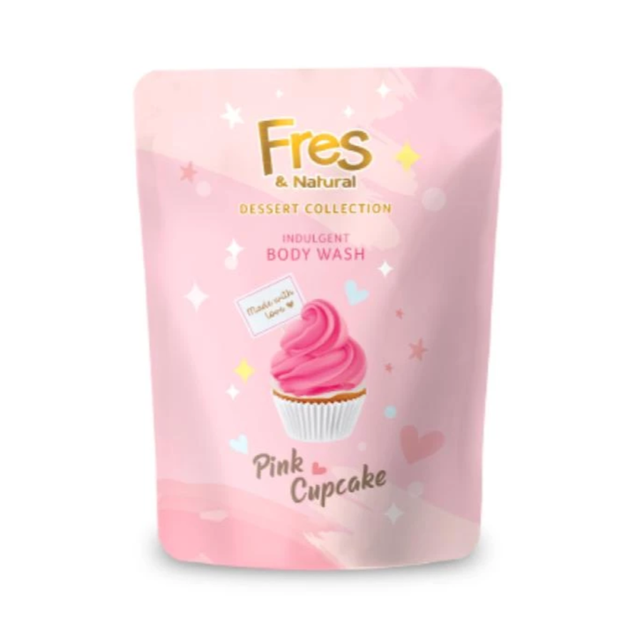 Fres & Natural Dessert Collection Pink Cupcake Body Wash 400ml adalah sabun mandi cair dengan aroma manis lembut terinspirasi dari dessert cupcake. Keharuman gourmand ini memberikan efek bahagia, segar, dan memanjakan kulit tanpa rasa menyengat atau membuat mual. Cocok untuk kamu yang ingin merasakan sensasi mandi menyenangkan dengan wangi yang manis sekaligus menyegarkan.