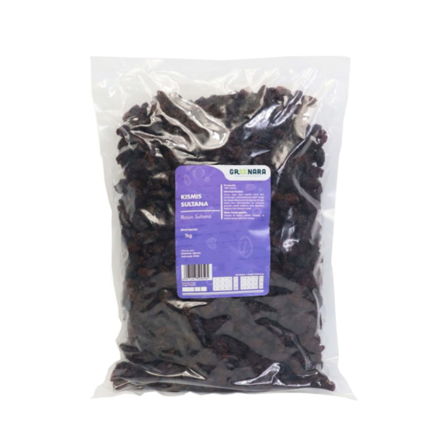 Dengan kemasan 1 Kg, Dark Raisin Kismis Sultana ini sangat praktis untuk disimpan dan digunakan kapan saja. Dapatkan kismis hitam berkualitas tinggi ini sekarang juga dan nikmati sensasi manisnya!