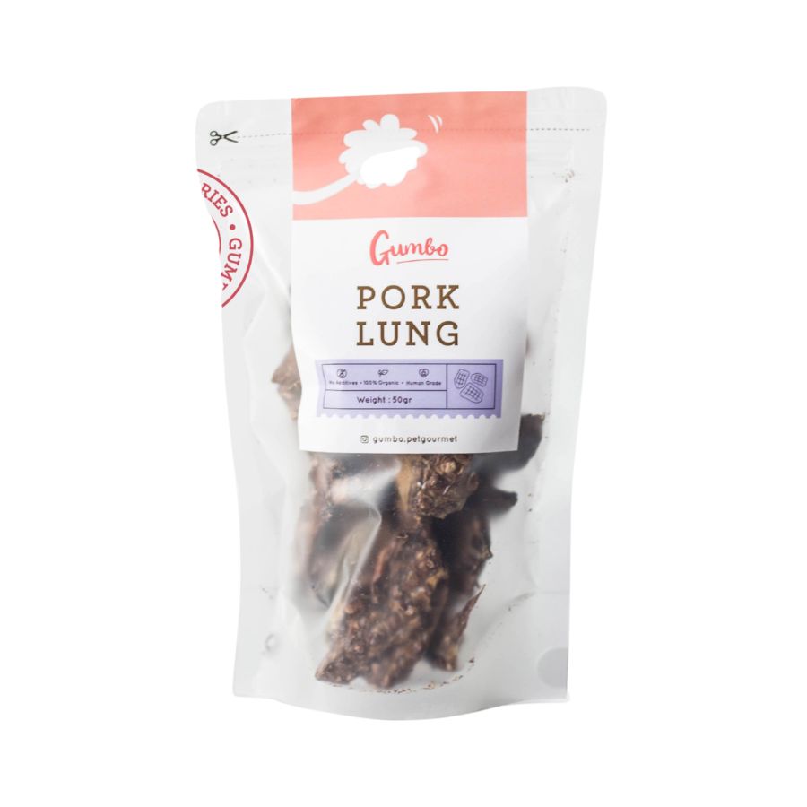 Gumbo Pork Lung snack hewan anjing yang tinggi akan protein dengan daging asli yang dapat mendukung kulit lebih sehat. Kaya akan nutrisi dan menggunakan bahan-bahan premium tanpa bahan pengawet/tanpa pewarna.