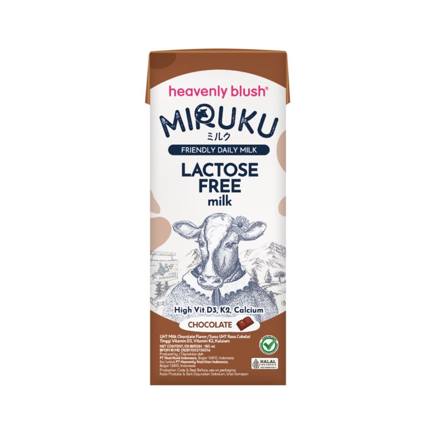 Heavenly Blush Miruku UHT Lactose Free Milk Chocolate 180ml adalah susu bebas laktosa dengan rasa cokelat yang rich dan lembut, enak diminum dingin kapan saja sebagai teman sarapan, jeda kerja, atau me time, cocok untuk kamu yang sensitif laktosa tapi tetap ingin menikmati susu sapi segar dengan sensasi cokelat yang memanjakan sekaligus bantu jaga imunitas, fokus, dan kesehatan tulang saat diminum rutin setiap hari.