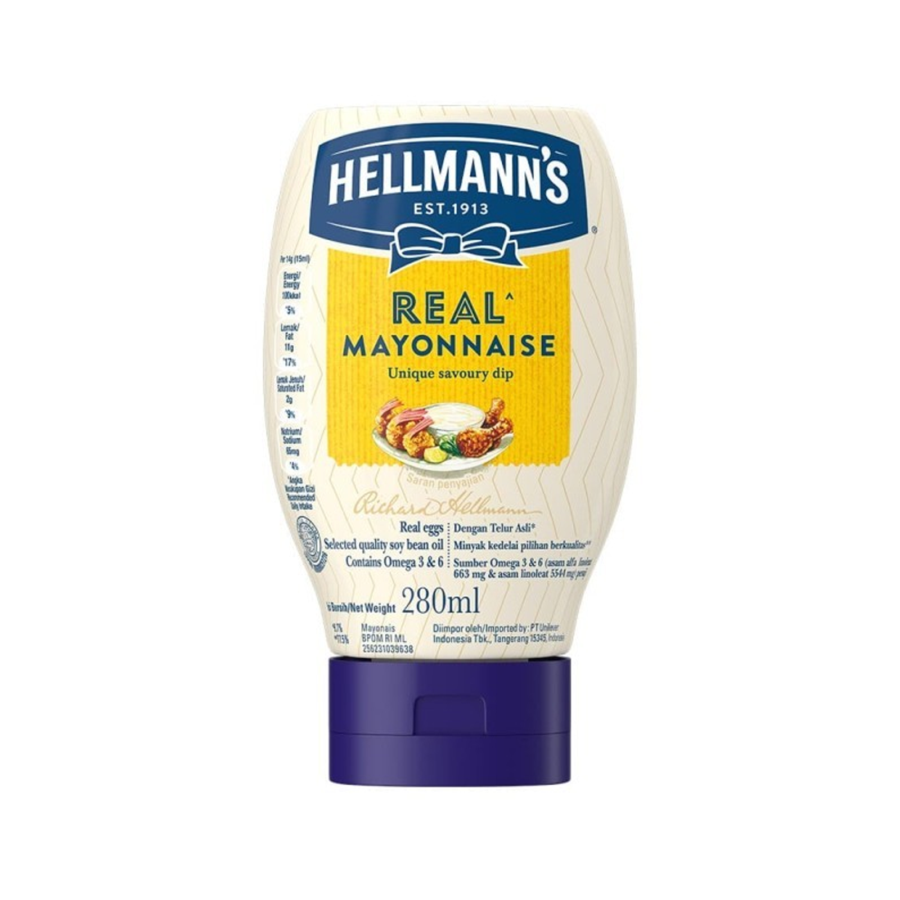 Dengan kemasan praktis 280ml, Mayones Hellmann's Real adalah pilihan yang tepat untuk memenuhi kebutuhan dapur Anda. Tambahkan pada sandwich, salad, atau gunakan sebagai saus untuk hidangan favorit Anda. Rasakan perbedaan yang sejati dengan Mayones Hellmann's Real yang menghadirkan cita rasa yang kaya dan tekstur yang lembut. Segera dapatkan Mayones Hellmann's Real 280ml ini dan nikmati hidangan yang lebih istimewa!