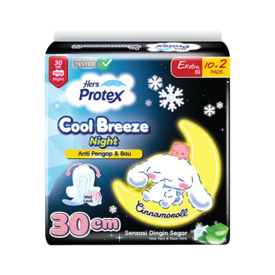 Hers Protex Cool Breeze Cinnamoroll Night Wing 30cm Pembalut Kewanitaan 12pads
