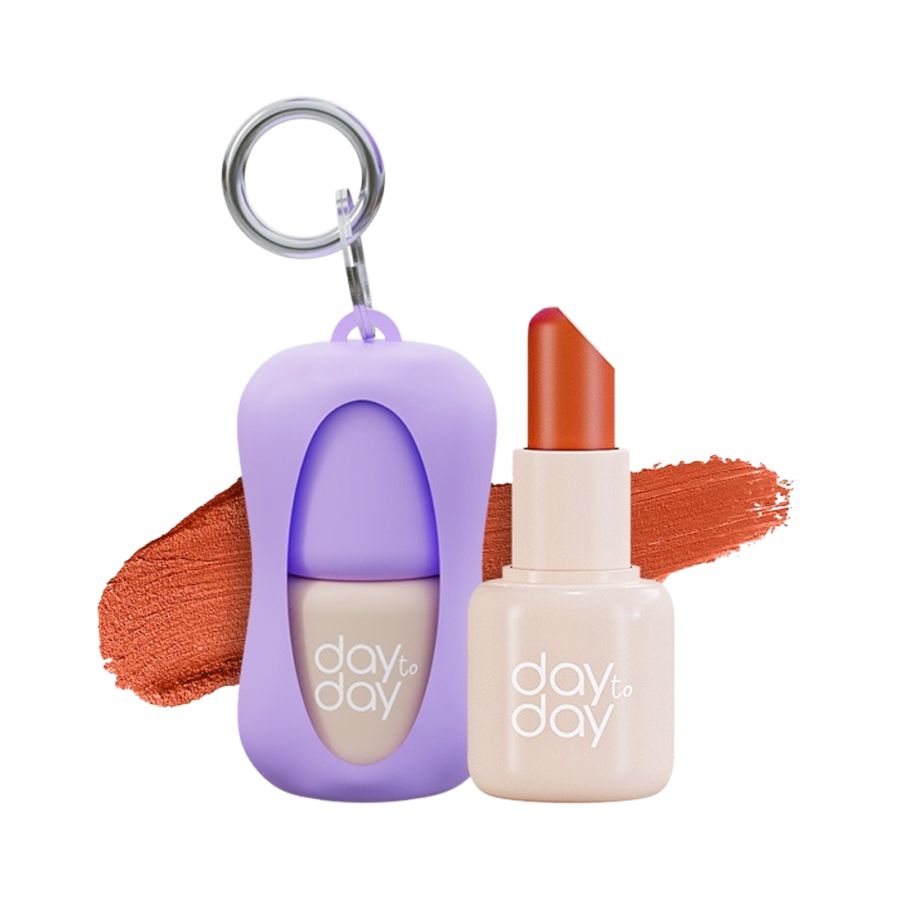 Lipstik mini 3-in-1 (lipstik, blush, eyeshadow) dengan formula creamy-matte yang pigmented dan membantu menyamarkan garis bibir; mudah dibawa dengan gantungan kunci.