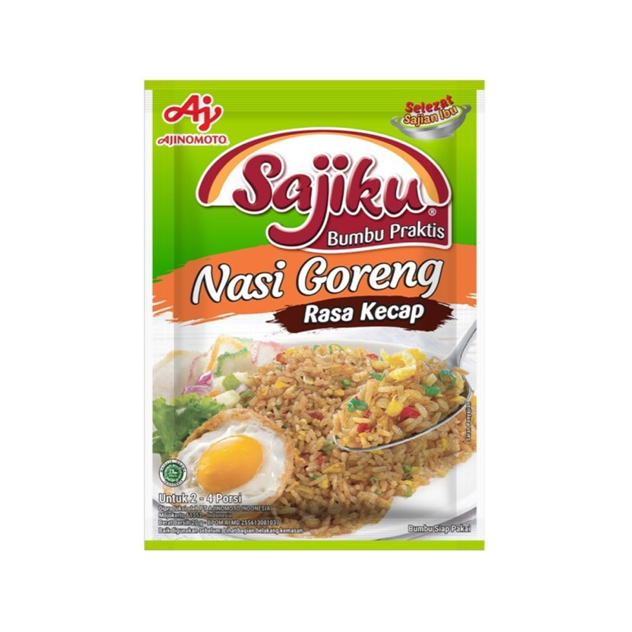 Sajiku Nasi Goreng Kecap adalah perpaduan bumbu dan rempah pilihan yang dikeringkan untuk membuat nasi goreng rasa kecap yang lezat dengan cara praktis dan lengkap tanpa tambahan bumbu lainnya. Mudah digunakan untuk masakan sehari-hari.