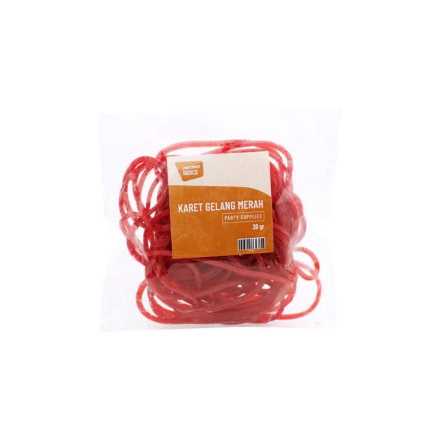 1 pak Astro Basics Karet Gelang Merah yang kuat dengan diameter sedang dengan berat 20gr.
