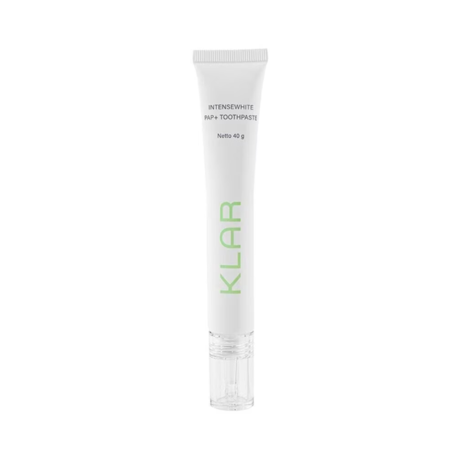 Dapatkan senyum putih alami dan napas segar setiap hari dengan KLAR Intensewhite PAP+ Toothpaste. Formulasi canggih berbasis PAP+ (Phthalimidoperoxycaproic Acid) bekerja efektif mengangkat noda dan pigmen penyebab gigi kuning tanpa menggunakan peroksida, sehingga lebih aman, tidak menyebabkan iritasi atau ngilu, dan tetap menjaga kesehatan enamel gigi.