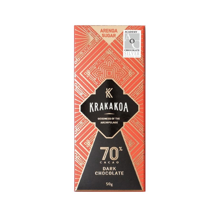Menikmati sensasi cokelat hitam murni dengan Krakakoa Cokelat Arenga 70%. Dibuat dari biji kakao pilihan dan gula aren organik, cokelat ini memiliki rasa khas yang memikat. Cocok untuk dinikmati kapan saja dan di mana saja.