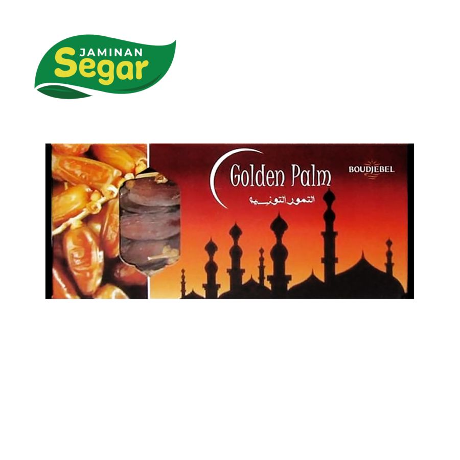 Kurma Golden Palm berasal dari Tunisia. Kurma Tunisia identik dengan kurma yang ada tangkainya dengan buah yang berwarna coklat cerah dan tekstur daging renyah serta memiliki rasa manis yang pas.