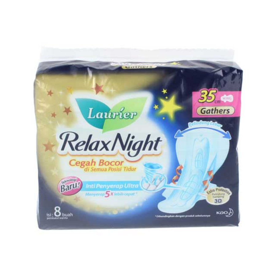Dapatkan kenyamanan maksimal saat tidur dengan Laurier Relax Night. Terdiri dari 8 pcs pembalut dengan panjang 35 cm dan dilengkapi dengan sayap untuk memberikan perlindungan ekstra. Desainnya yang inovatif dengan gathers memberikan perlindungan sempurna dan mencegah kebocoran saat Anda tidur.