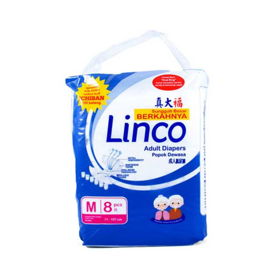 Linco adult diapers memberikan perlindungan optimal dengan daya serap tinggi dan bahan lembut yang nyaman di kulit. Desain perekat kuat memudahkan pemakaian serta menjaga kebersihan dan kepercayaan diri sepanjang hari.