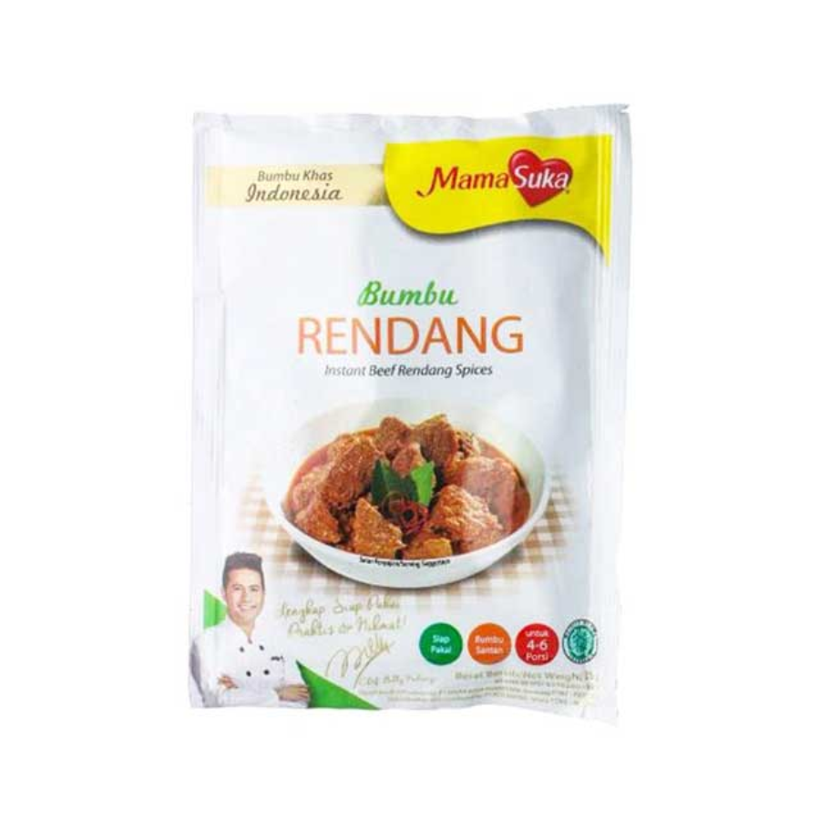 Bumbu Rendang MamaSuka merupakan bumbu rendang yang terbuat dari bahan alami pilihan. Dikemas dalam bentuk powder untuk membuat masakan rendang yang lezat penuh selera dan juga bisa digunakan untuk membumbui masakan nusantara lainnya.
