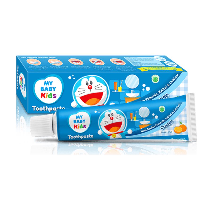 My Baby Kids Toothpaste Orange merupakna pasta gigi yang diformulasikan khusus untuk anak-anak dengan rasa buah yang segar dan tanpa gula agar anak senang menggosok gigi. Kombinasi Double Fluoride (SMFP dan Sodium Fluoride), Xylitol dan Calcium membantu menjaga kesehatan dan kekuatan gigi, serta memberikan perlindungan terhadap kerusakan gigi.