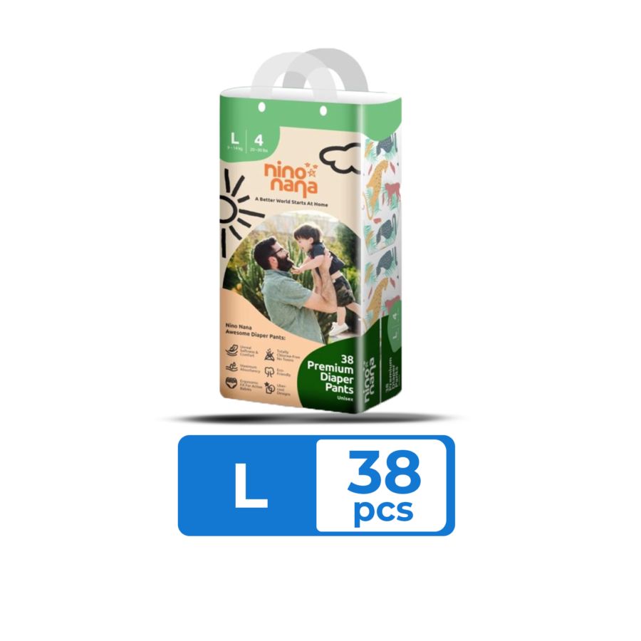 Nino Nana Diaper Pants Popok Bayi Celana Motif Jungle - L (9-14kg) Nino Nana Eco-Conscious Premium Diapers. Nino Nana di-desain untuk kenyamanan terbaik dan dengan peduli lingkungan.