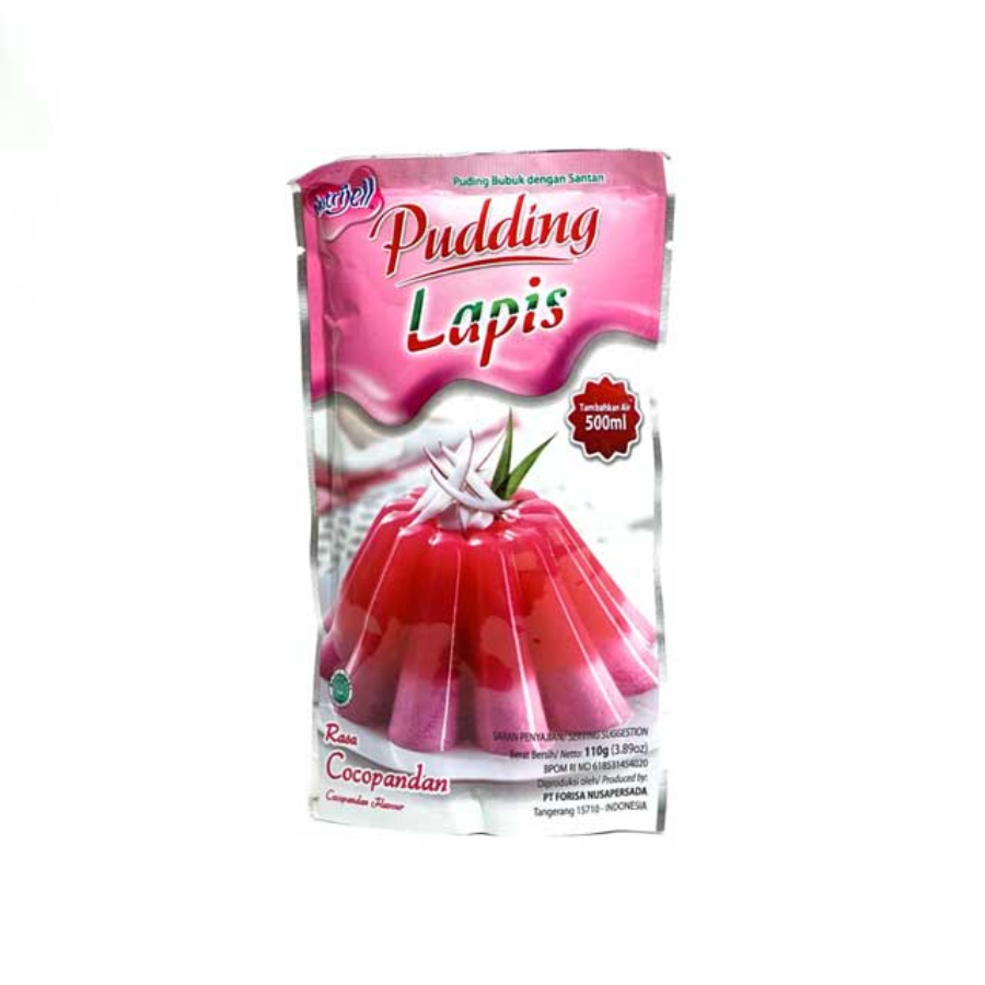 Pudding bubuk instant yang sangat praktis, mudah cara membuatnya, sudah mengandung gula dan susu, cukup tambahkan air saja.